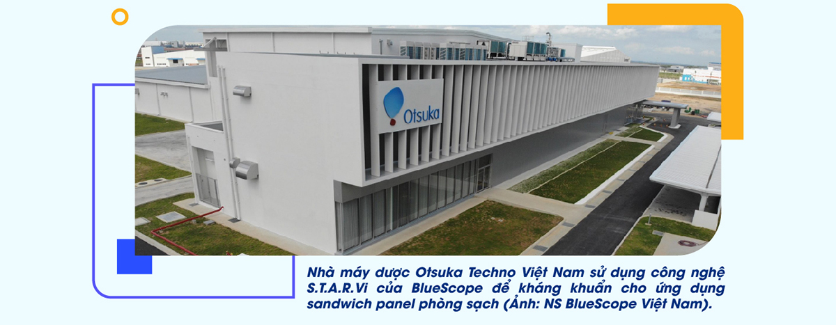 Gần đây nhất, năm 2022, chúng tôi ra mắt dòng sản phẩm thép mạ màu đầu tiên trên thị trường sandwich panel dành riêng cho ứng dụng phòng sạch, phòng lạnh và vách kiến trúc, giúp giải bài toán khó của chủ đầu tư về vật liệu không nung, thi công nhanh chóng và độ bền cao. Dòng sản phẩm mới này giải được hết các nan đề như: phòng lạnh dùng cho các khu vực chế biến và lưu trữ thủy hải sản nên thường dễ bị ăn mòn, các phòng sạch thì cần điều kiện đảm bảo sạch vi khuẩn để lắp ráp, nghiên cứu các linh kiện điện tử hay vách kiến trúc thường có yêu cầu độc đáo về sóng tôn và màu sắc…