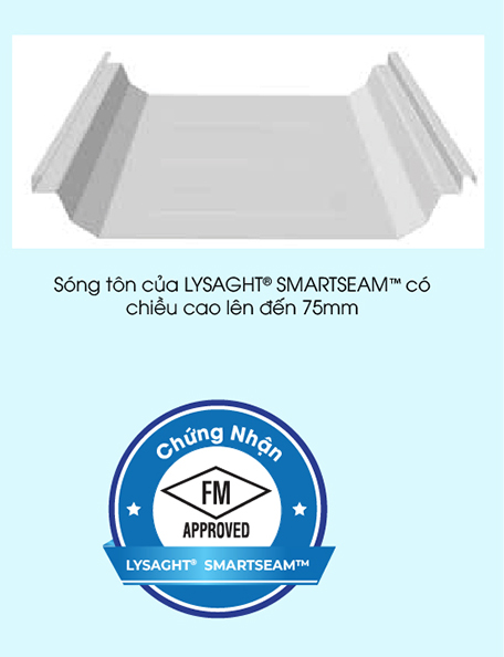 Bên cạnh đó, với thời tiết khắc nghiệt của xứ sở nhiệt đới như Việt Nam, thường gây ra các hiện tượng rỉ sét, tốc mái, làm giảm tuổi thọ công trình, chúng tôi đã phát triển và đưa vào thị trường dòng tôn cuốn mép thế hệ mới LYSAGHT® SMARTSEAM™ hoàn toàn không dùng vít, giải pháp chống dột tuyệt đối giúp chủ đầu tư an tâm vận hành hoạt động sản xuất, kinh doanh. Sản phẩm được ứng dụng công nghệ cuốn mép 360° giúp mép tôn được khoá chặt và kín 100% chống thấm dột toàn diện, có khả năng chịu tải trọng gió đạt chứng nhận FM APPROVALS (US), giảm rủi ro tốc mái. Đặc biệt là khi nhiệt độ thay đổi, đai seam với móc seam di động, cho phép hệ mái lợp co giãn độc lập với hệ khung ở dưới, giúp toàn bộ hệ mái trượt 100%, ngăn hiện tượng biến dạng.