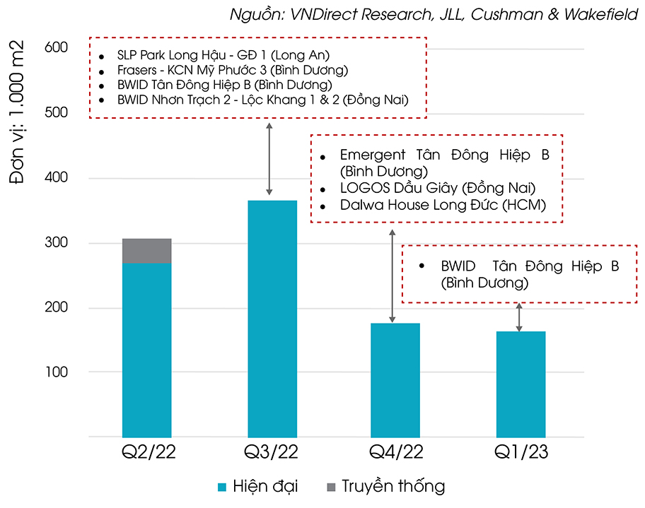 Mặt khác, một điểm đáng chú ý nữa trong xu hướng hiện nay là hoạt động cho thuê nhà máy xây sẵn (NXXS) và nhà kho xây sẵn (NKXS) tiếp tục phát triển cả ở khu vực miền Bắc và miền Nam trong nửa đầu năm nay.