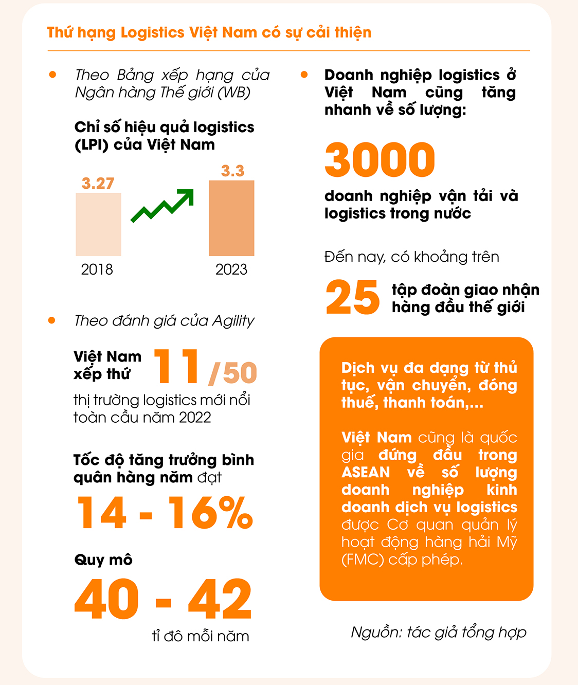 Báo cáo về ngành Logistics của VinaCapital công bố hồi giữa năm 2023, đánh giá Việt Nam là một trong những quốc gia có ngành dịch vụ logistics phát triển nhanh nhất thế giới (với tốc độ khoảng 14 – 16% trong những năm gần đây).