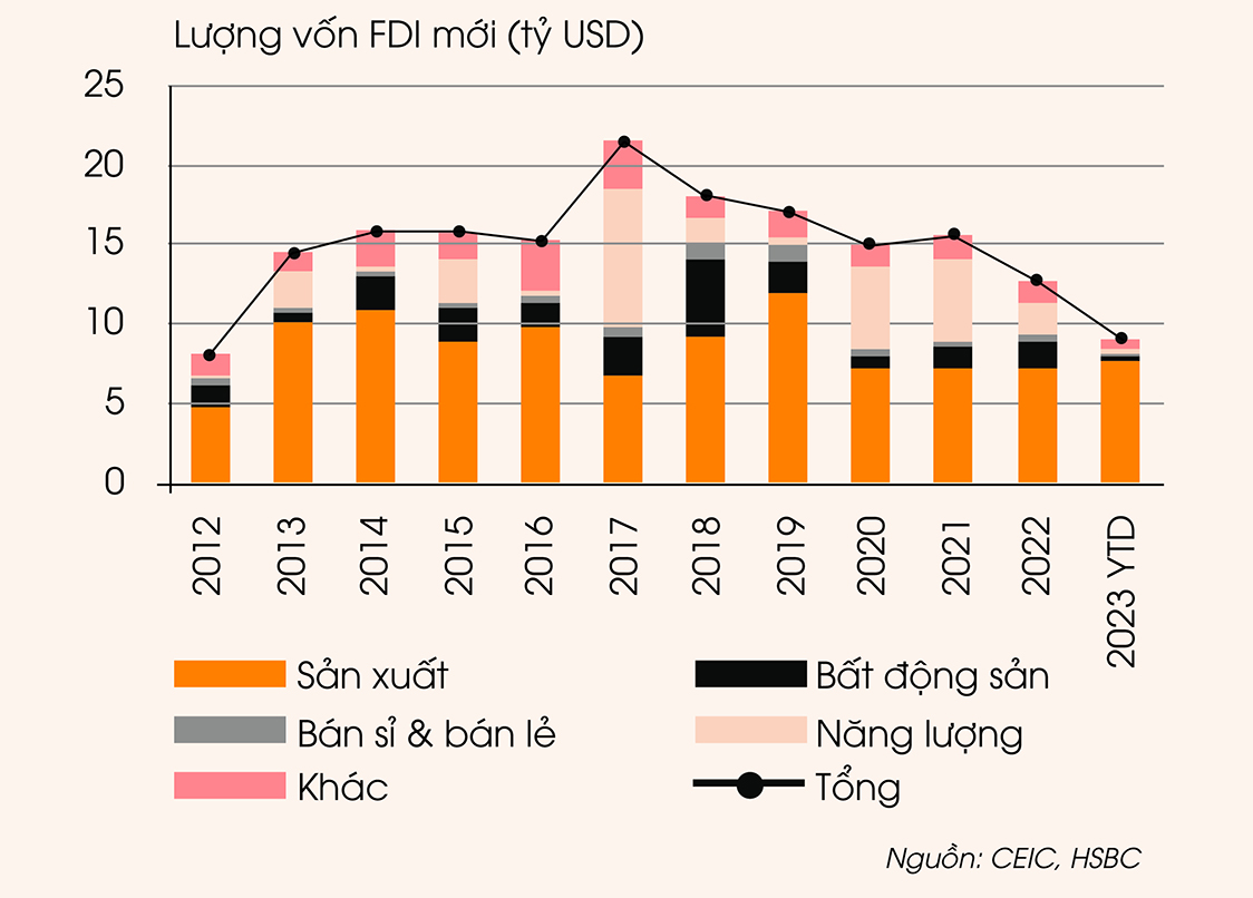 Còn báo cáo của HSBC công bố hồi giữa tháng 9, cho biết đánh giá lượng vốn FDI mới vào lĩnh vực sản xuất của Việt Nam tính đến thời điểm hiện tại trong năm nay đã cao hơn mỗi năm trong ba năm gần đây. “Trong khi phần lớn khoản đầu tư ban đầu đổ vào lĩnh vực dệt may và giày dép có giá trị gia tăng thấp hơn, Việt Nam đã nhanh chóng thăng hạng trong chuỗi giá trị, phát triển thành trung tâm lắp ráp điện tử quan trọng”, báo cáo HSBC đánh giá.