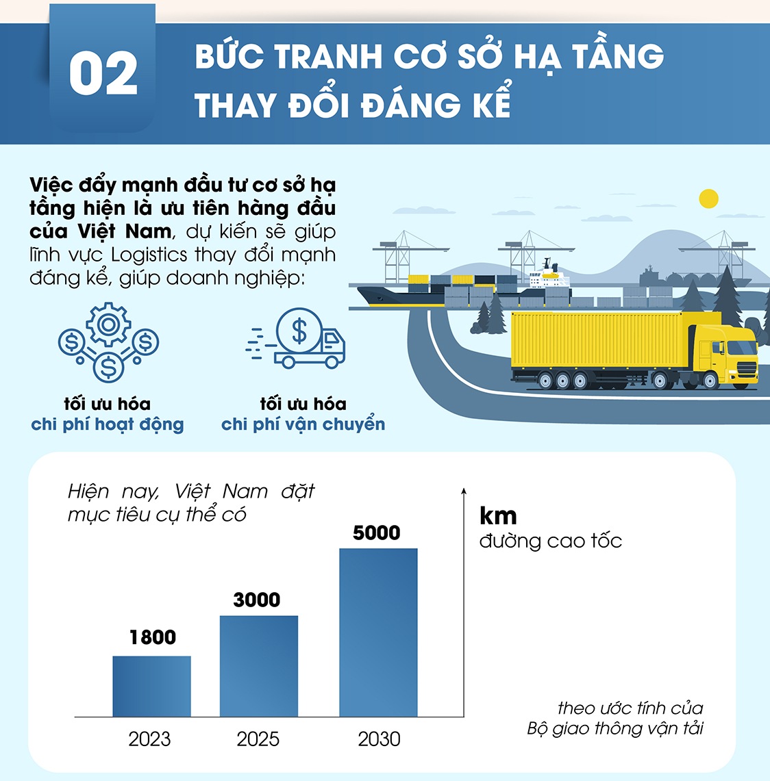 Một phần không nhỏ trong nguồn lực này được dành cho hạ tầng giao thông, huyết mạch của nền kinh tế và cũng là huyết mạch của ngành Logistics.
