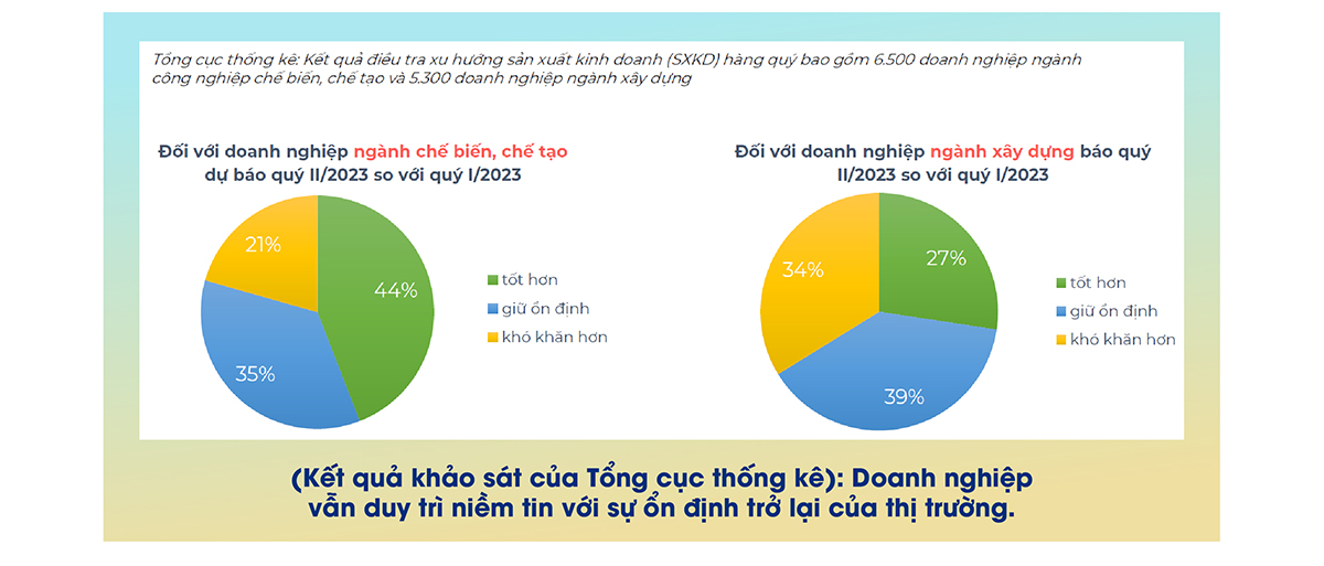 Kết quả khảo sát của Tổng Cục Thống kê về niềm tin của doanh nghiệp ngành chế biến chế tạo và doanh nghiệp ngành xây dựng cũng đồng hướng với những gì ông Dũng nhận định. Đa số các doanh nghiệp được khảo sát đều có niềm tin thị trường sẽ ổn định và tốt lên trong Quý II/2023.
