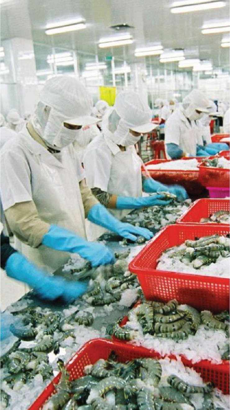 Nhóm thứ ba là sản phẩm nông nghiệp, nông sản chế biến. Các mặt hàng này từ Trung Quốc sẽ chịu thuế 10 – 25%. Trong số này thì các mặt hàng thủy sản sẽ chịu tác động mạnh nhất, giảm kim ngạch khoảng 700 triệu đô la. Việt Nam có thể khai thác được phần kim ngạch giảm ở mặt hàng tôm do tương đương về chủng loại xuất sang Mỹ (tôm thẻ chân trắng).