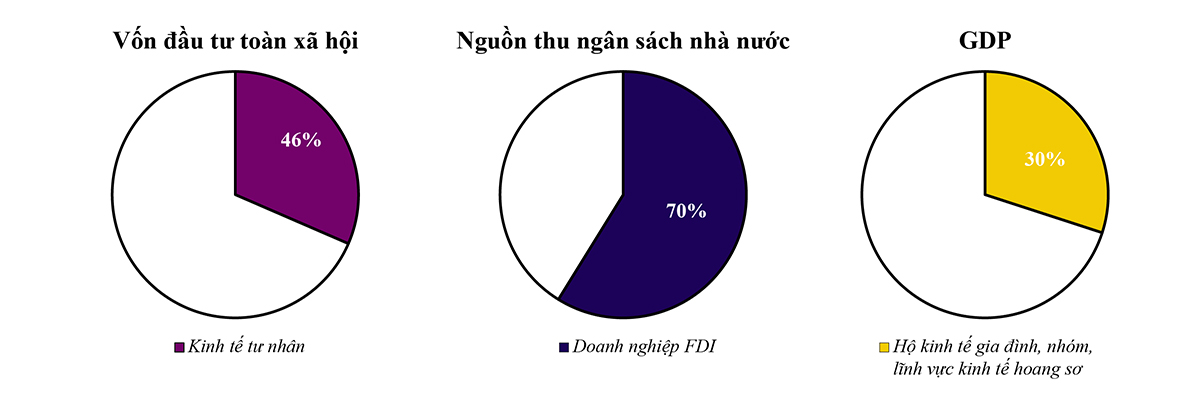 - Về xuất khẩu, phần lớn các thị trường đều giảm, ngoại trừ thị trường Mỹ tuy tăng nhưng vẫn đáng lo ngại. Đóng góp vào tổng sản phẩm quốc nội (GDP), có đến 30% GDP của Việt Nam đến từ hộ kinh tế gia đình, nhóm lĩnh vực kinh tế còn hoang sơ. Bên cạnh đó, chúng ta còn chứng kiến thị trường bất động sản, chứng khoán một năm trôi qua không có nhiều khởi sắc. Dù chúng ta có cải thiện về môi trường kinh doanh nhưng vẫn còn chưa cao. Môi trường kinh doanh chỉ mới đứng thứ 5 trong ASEAN, hành trình như vậy vẫn còn rất xa để vào top 4.