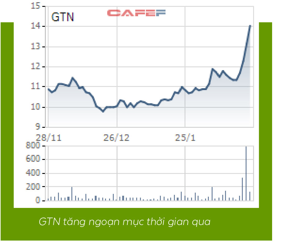 Hoạt động kinh doanh của GTNfoods dần ổn định và gặt hái thành quả. Song song với đó, những nhà đầu tư bền gan với cổ phiếu GTN của GTNfoods đã được nhìn sắc tím liên tục nhiều phiên. Giá cổ phiếu GTN tăng mạnh từ vùng 10.000 đồng/cổ phiếu lên ngưỡng 15.000 tương đương mức tăng 50% chỉ trong một thời gian rất ngắn.
