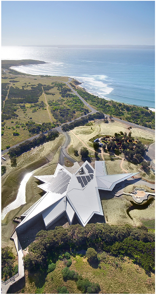 Trung tâm có lối kiến trúc độc đáo, với các đường nét góc cạnh sắc nét, hiện đại tương phản với sự nguyên sơ, gồ ghề của eo biển Bass.