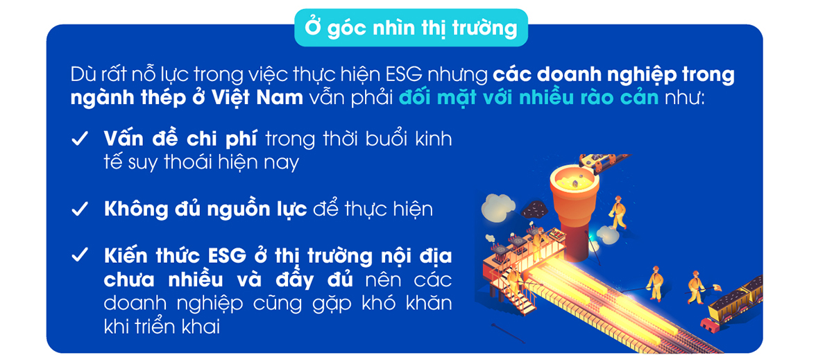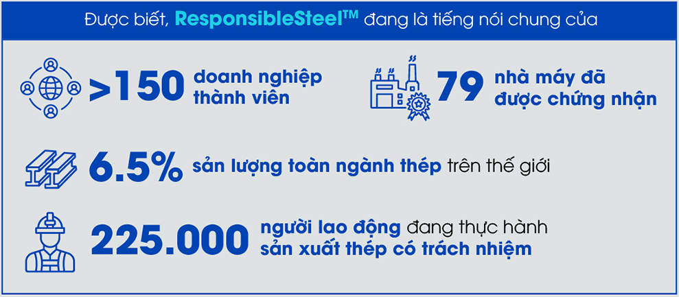 Tuy nhiên, để các doanh nghiệp trong ngành thép có thể có những thay đổi trong tư duy quản trị về phát triển bền vững và đưa ESG (viết tắt là Environmental: môi trường, Social: xã hội và Governance: quản trị doanh nghiệp) vào trong chiến lược kinh doanh là điều không dễ dàng. Vì vậy, để hỗ trợ ngành thép, vào năm 2019, ResponsibleSteel™ đã phát triển bộ tiêu chuẩn ESG cho ngành thép.