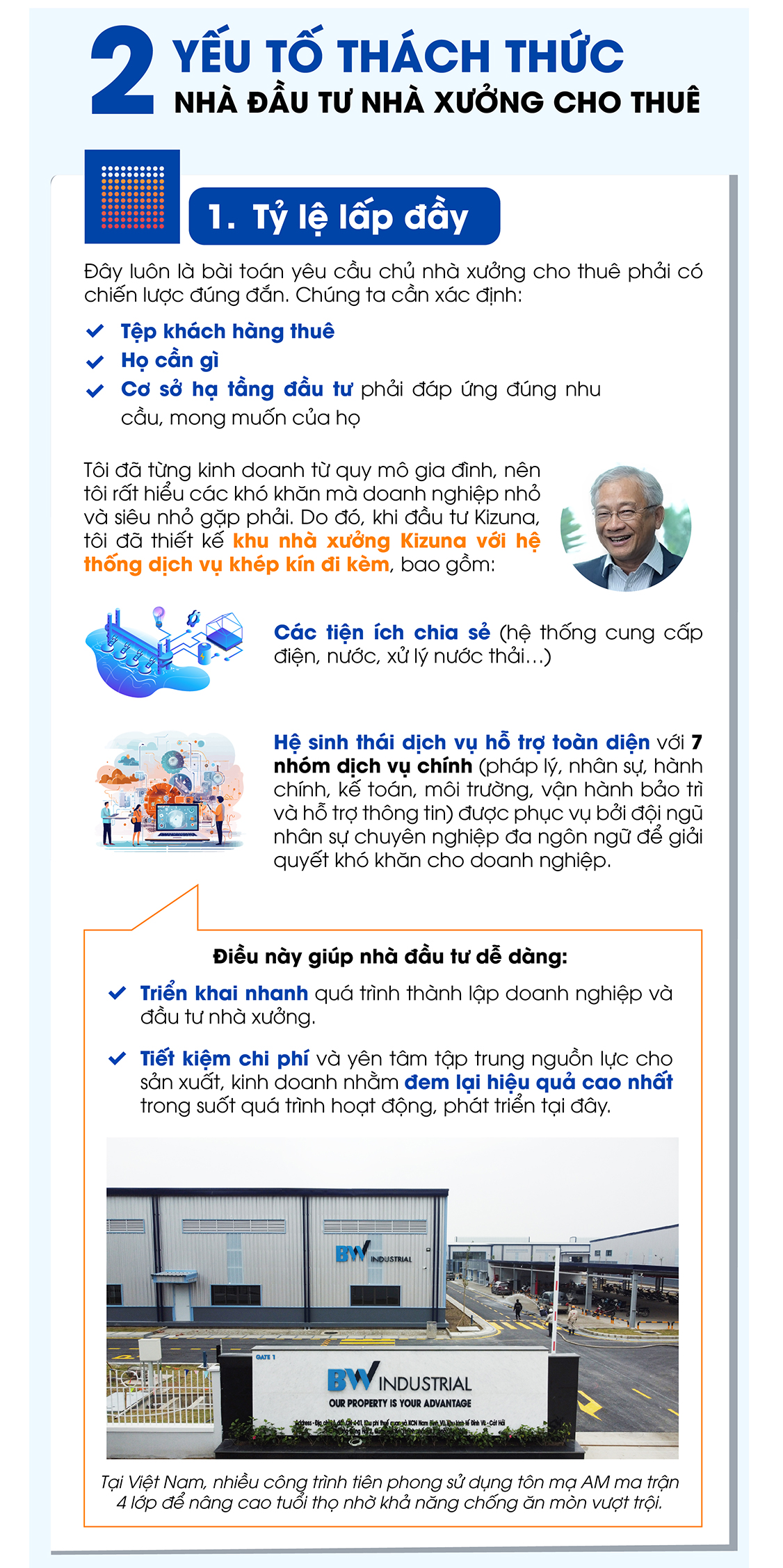 Theo ông Đoàn Hồng Dũng – Chủ tịch HĐQT Kizuna – làn sóng đầu tư nhà xưởng cho thuê tại các khu công nghiệp hình thành nhờ sức hút của thị trường Việt Nam với nhóm doanh nghiệp FDI, cả ở quy mô lớn, nhỏ và vừa.