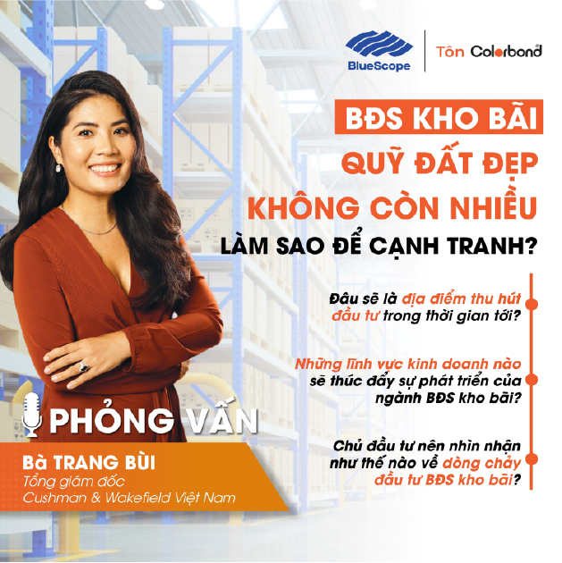 NS BlueScope Việt Nam đã có cuộc trò chuyện với bà Trang Bùi, Tổng Giám Đốc Cushman & Wakefield Việt Nam, để hiểu rõ hơn về dòng chảy bất động sản (BĐS) kho bãi tại Việt Nam.