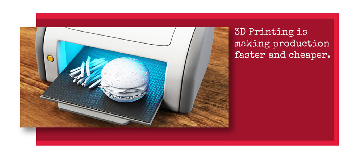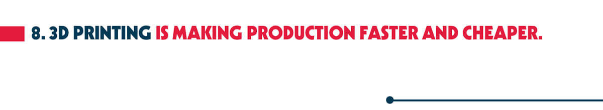 The expensive and time-consuming process of tooling for manufacturers is already being transformed by 3D printing. Historically the production of molds, jigs and fixtures used in the mass production of heavy equipment took months, was very expensive and typically involved utilizing tooling companies headquartered overseas. 3D printing makes it possible for tooling to be cost effectively completed on-site, in days, and has already been embraced by the automotive and aerospace manufacturing industries.