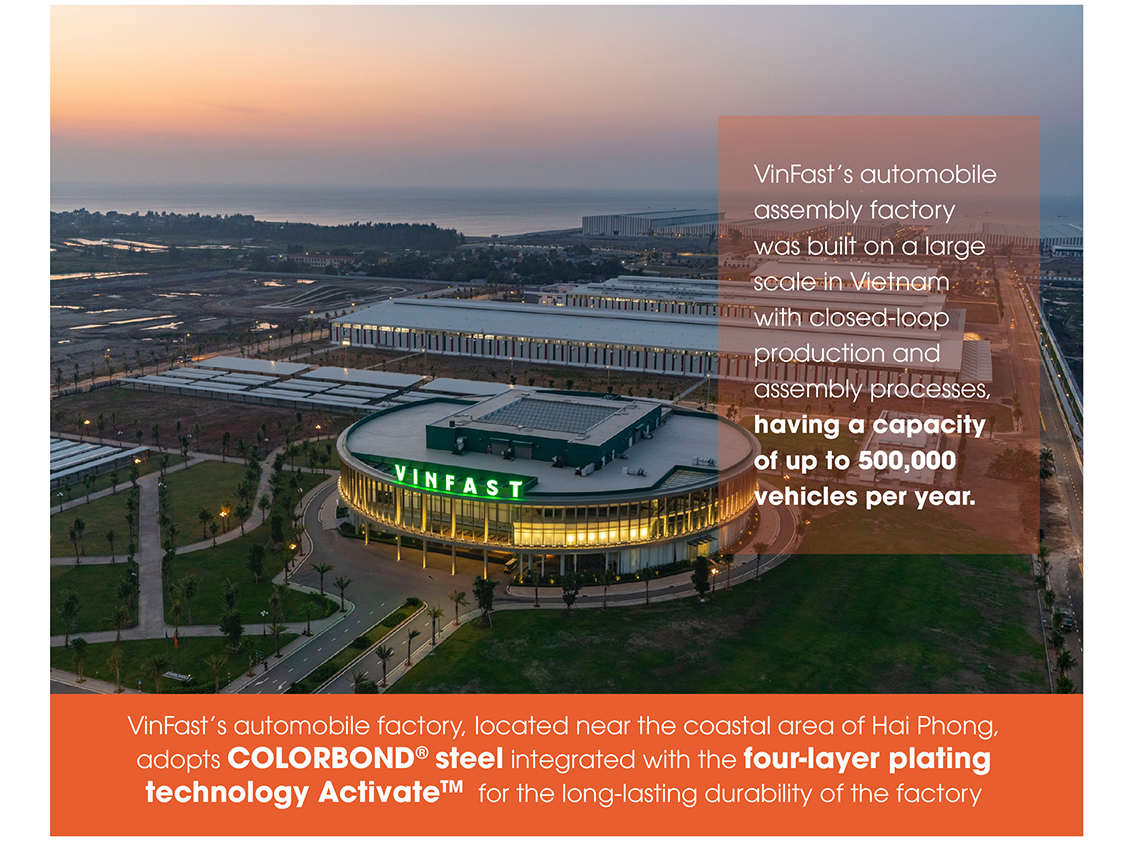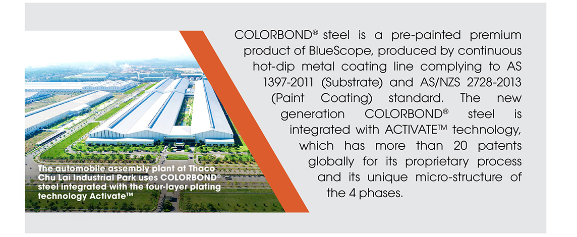 According to VAMA, automobile manufacturing and assembly factories must be fully equipped to ensure industrial hygiene, labor safety, hazard reduction (noise, heat, dust), fire and explosion prevention, as well as protection of the landscape, environment, and industrial civilization. According to BlueScope, a provider of innovative steel materials, products, systems, and technologies, Vietnam’s automobile industry possesses huge potential and attractiveness. There has been a relocation wave and investment attraction as well as a race to scale up automobile production in the coming years. It is the reason why the Australia-based steel company focuses on providing modern steel technologies for buildings and factories, especially in the automobile manufacturing industry.