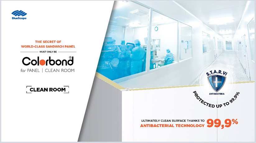 To enable research, development, and product innovation, the capacity to maintain appropriate levels of bacterial control is a crucial condition for clean rooms. NS BlueScope Vietnam has introduced to the market COLORBOND® for Panel | Clean Room, which disinfects surfaces to up to 99.9% using S.T.A.R.Vi Technology, a feat that no other sandwich panel application is currently capable of. Effective on both Gram (-) and Gram (+) strains, this technique inhibits the capacity of bacteria to grow and multiply.