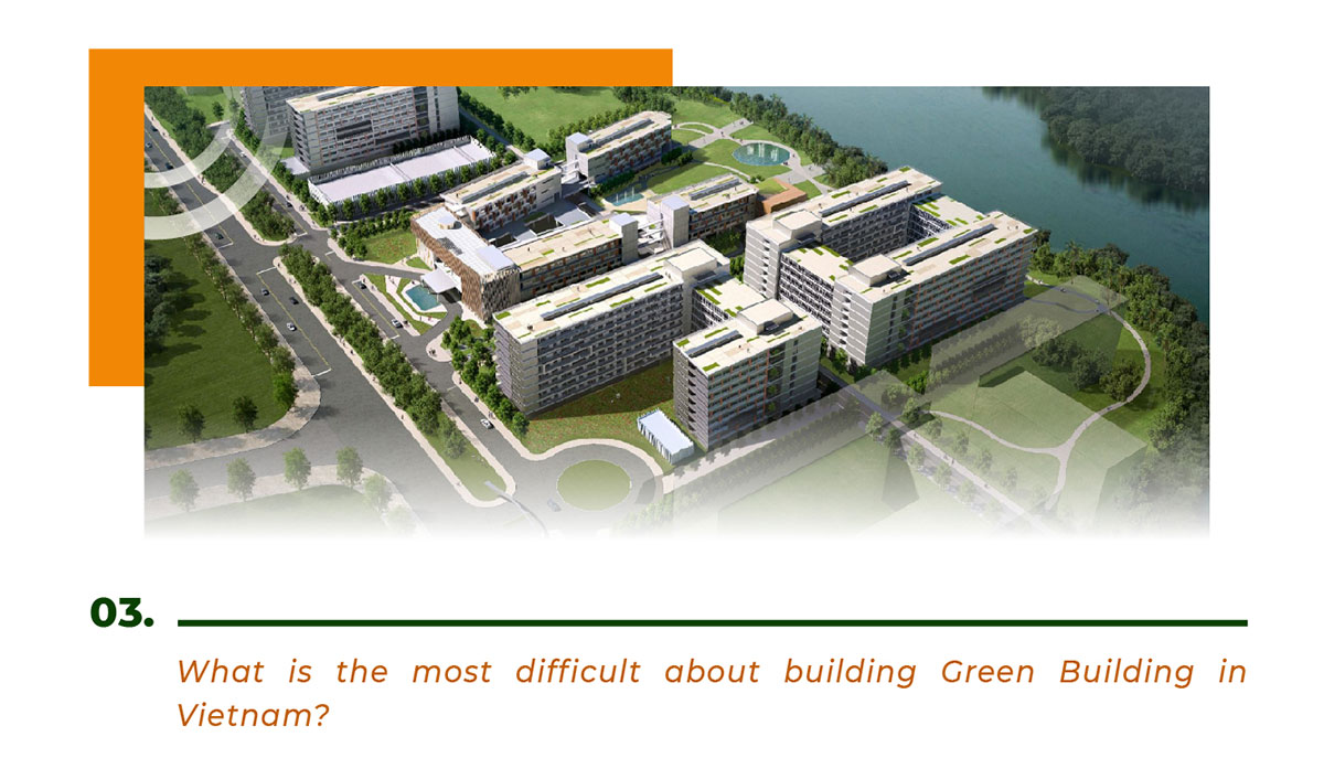 In Vietnam, investors do not have any support policies for executing training programs. In developed countries, there is an incentive for GB from the start. For example, in Singapore, the government subsidies the GB pioneers so that they have the capital to invest, and enact a training policy on GB. Meanwhile, in Vietnam, VGBC is still a nonprofit organization, having to pay its staffs monthly and carry out external projects, when there is a no state budget, there is not enough resources to guide and change the construction site in the direction of GB.
