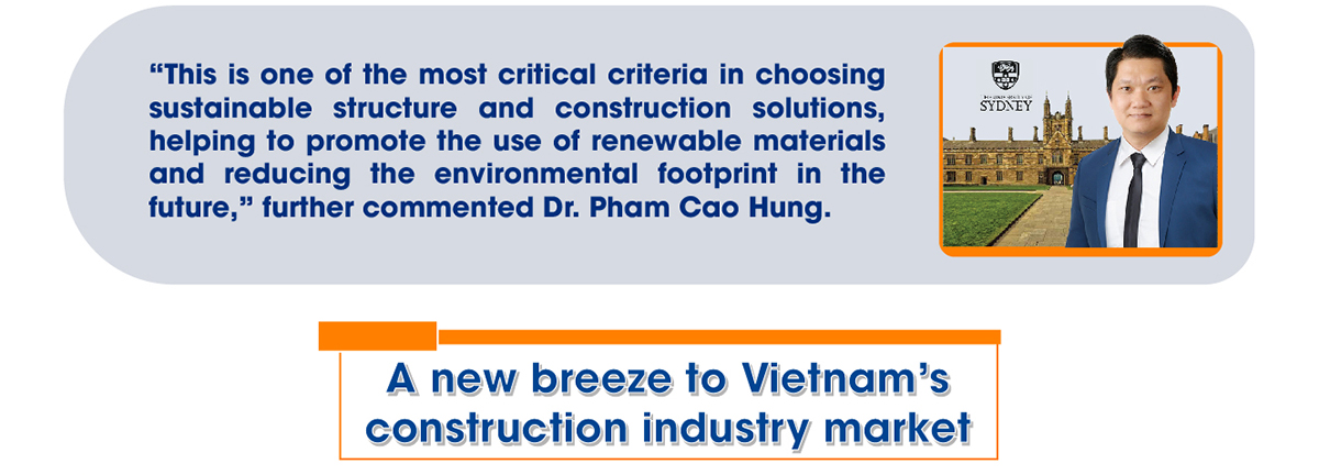 According to Dr. Pham Cao Hung, Senior Lecturer at The University of Sydney (Australia), composite steel and concrete structure emerges as a popular choice in worldwide buildings, especially for multi-story structures. Apart from being prominent compared to traditional reinforced concrete structures in terms of high load capacity, long-spanning, compact and aesthetic components, the prefabricated steel of composite steel and concrete structure allows an easy of construction with less time, labor cost, and construction waste and without formwork.