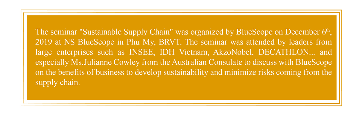 At the event on Sustainable Supply Chain Development was organized recently by NS BlueScope Vietnam, representatives of businesses in different fields such as INSEE, DECATHLON, AkzoNobel… expressed their wish to minimize supply chain risks for sustainable development together.