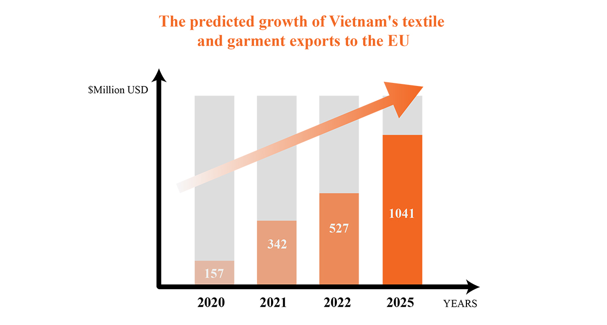 According to many comments right from the first days of negotiation, the textile and garment sector will get the most advantages when the EVFTA comes into effect because textile and garment sector are subject to the highest tariffs with a weighted average tax rate of 9%. With the EVFTA becoming effective, the tax rate will be reduced to 0% within 7 years and gives the textile and garment sector a chance to increase their market share in the market with textile and garment import of US$ 250 billion each year.