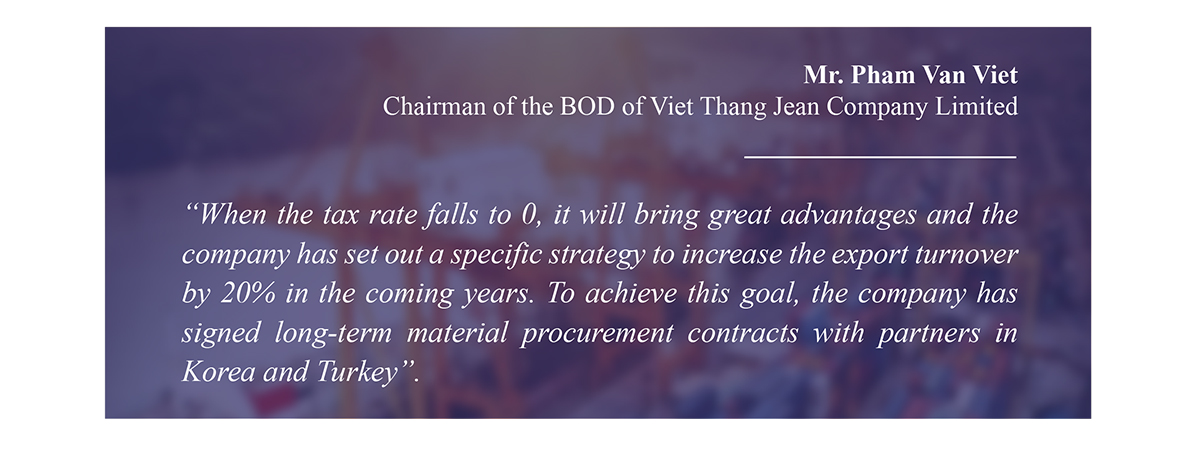Mr. Pham Van Viet – Chairman of the BOD of Viet Thang Jean Company Limited shared that the company is currently exporting mainly to the EU with annual turnover of US$ 8 million, of which Jean products are subject to a tax rate of up to 16%.