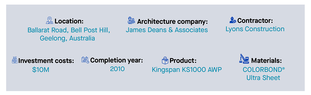 To secure the aforesaid factors, panels with LPCB & FM standardized COLORBOND® sheet were used for the works’ coverage, helping the architects to explicitly show off their design and demonstrate the outstanding resistance to extreme temperature in Geelong.