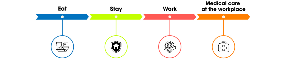 Enterprises have started to apply the 4-on-site model (eat, stay, work, and medical care at the workplace) to ensure smooth production without interruption even in case of F0 cases in the factory and create trust and peace of mind for workers during work at the same time.