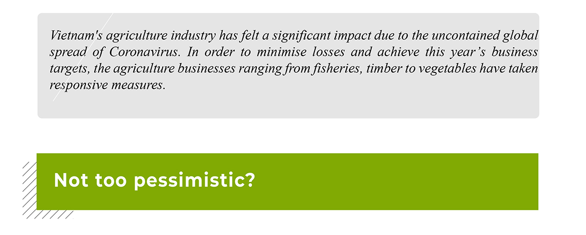 Although experts and many businesses are quite optimistic, the impact of the Coronavirus outbreak on agriculture and forestry is unavoidable. In fact, the export of agricultural products is seriously reduced in the Chinese market, and many businesses are still afraid that when the flu goes away, the demand of the market will be more or less reduced. In this context, in order to minimize losses, many responsive measures have been urgently implemented by businesses.