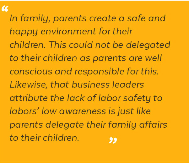 In developed countries, business leaders pay special attention to labor safety and hygiene management as they are aware that once accidents happen, a decline in their stock price by USD 1 could lead to a decline in their company value by hundreds of USD. Investment in labor safety system enables enterprises to significantly cut down on unnecessary risk-related costs. In which business leaders play a role as a guide.