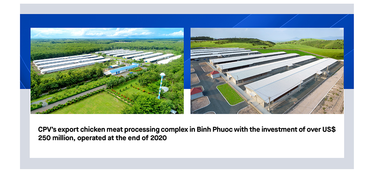 While, for the foreign enterprise – C.P. Vietnam Livestock Co., Ltd was ranked on the top with highest investment capital into agriculture. Mr. Montri Suwanposri – CEO of C.P. Vietnam Livestock Co., Ltd (CPV) unveiled that: Currently, CPV has 12 feed plants with a total capacity of 4.2 million tons/year. CPV has 2 seafood processing plants, 3 meat processing plants. At the end of 2020, Export Chicken Processing Plant Complex was inaugurated in Binh Phuoc. The Complex was invested with over US$ 250 million, having a maximum capacity of 100 million units/year, the biggest scale in Southeast Asia… In addition to the available plants, CPV’s investment was injected into swine slaughtering and cutting plants located at Phu Nghia, Hanoi to reduce intermediary phases, facilitating swine price reduction.