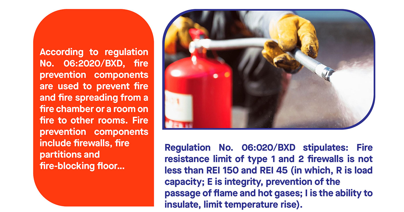 QCVN No. 06:2020/BXD also adjusts the fire resistance limit of some other fire prevention components such as doors and fire valves… to be stricter than that of QCVN No. 06:2010/BXD.