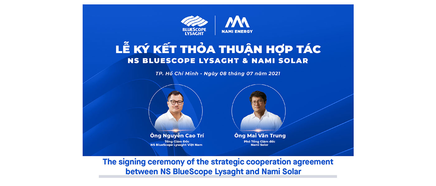 The two leading experts, NS BlueScope Lysaght Vietnam – the Australian steel solution expert and Nami Solar – a subsidiary of Nami Energy, renowned for its expertise in the renewable energy sector signed a strategic cooperation agreement on 8 July 2021 .