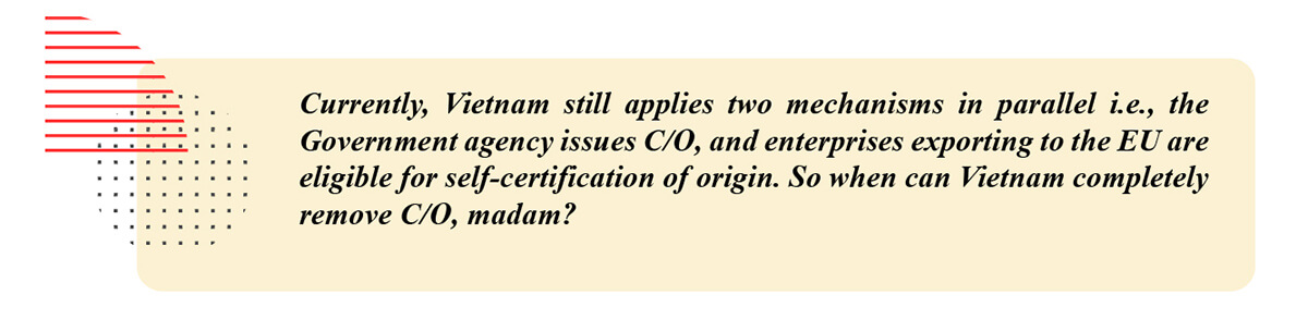 This mechanism is not only parallel in Vietnam – EU but also in the CPTPP, currently piloting the mechanism of self-certification of origin in ASEAN.