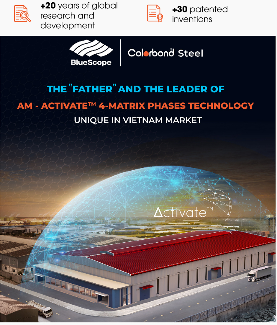 NS BlueScope launched AM – Activate™ 4-matrix phases alloy coating technology – a superior coating technology compared to AZ coating (only 2 phases).