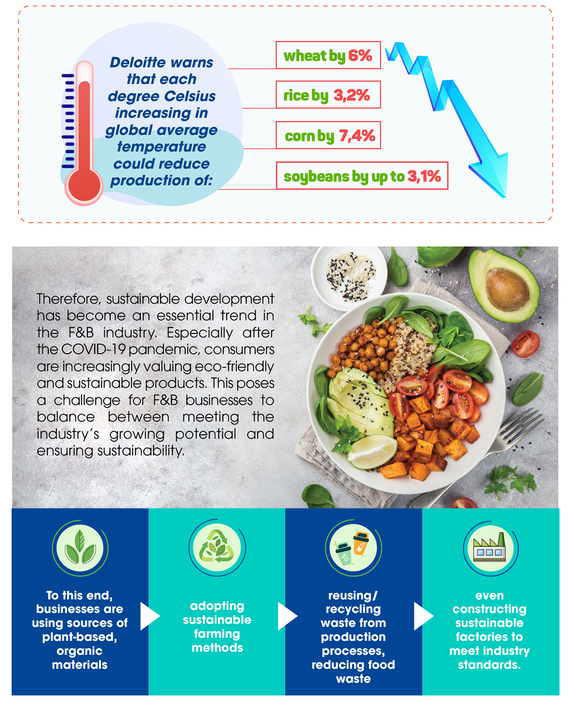 While the potential is evident, the F&B industry is also among those with a significant impact on the environment, biodiversity, climate change, etc. Conversely, climate change is affecting the food supply of the F&B industry.