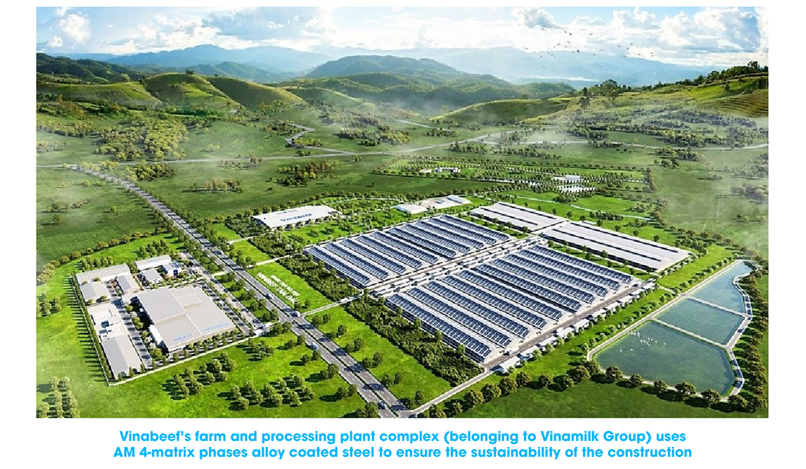 Vinamilk’s factory especially uses AM 4-matrix phases alloy coated steel from NS BlueScope Vietnam to ensure durability for its farm and factory complex because this material integrated with a 4-matrix phases alloy coating technology can resist harsh environments. Sustainable factories over time are also among the factors that help reduce the impact of production activities on the environment.