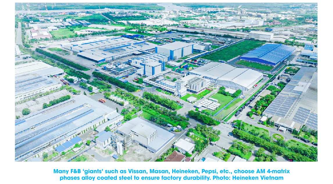 Not only Vinamilk but also many top brands in the F&B industry such as Coca-Cola, Vissan, Masan, Heineken, Pepsi, etc., are using AM 4-matrix phases alloy coated steel for their factories or specific areas such as clean rooms, cold rooms, etc.