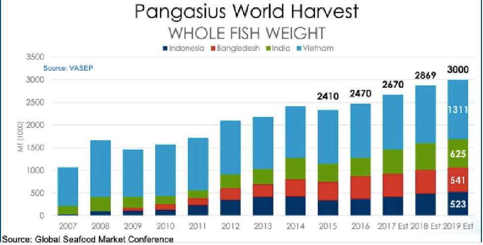Given ever-rising demands, experts expect pangasius sector will continue to grow in 2019 when the world’s output is forecast to reach 3 million tons, up by 4.6% as compared to prior year. Especially, Chinese market has much room for growth with extremely high consumption demand, or US market has many highlights thanks to reduction in trade barrier.
