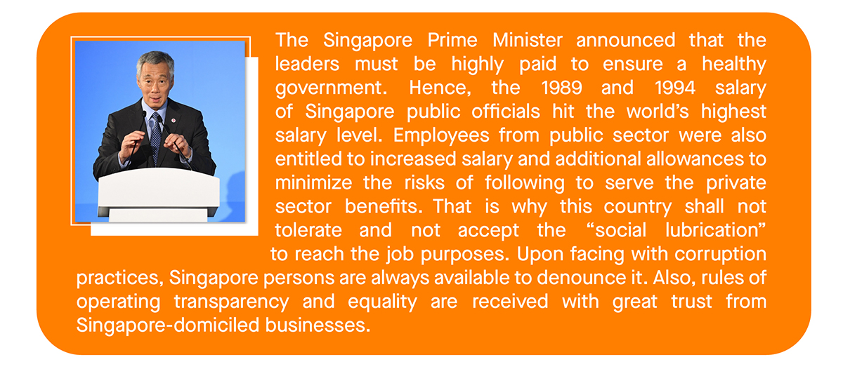 Singapore is currently known as a hub for economics, finance and commerce of Asia and also rated as the best country to live in the world. According to analysts, Singapore success is contributed by many factors, in which one of critical factors is the effective administration apparatus and strict corruption control.