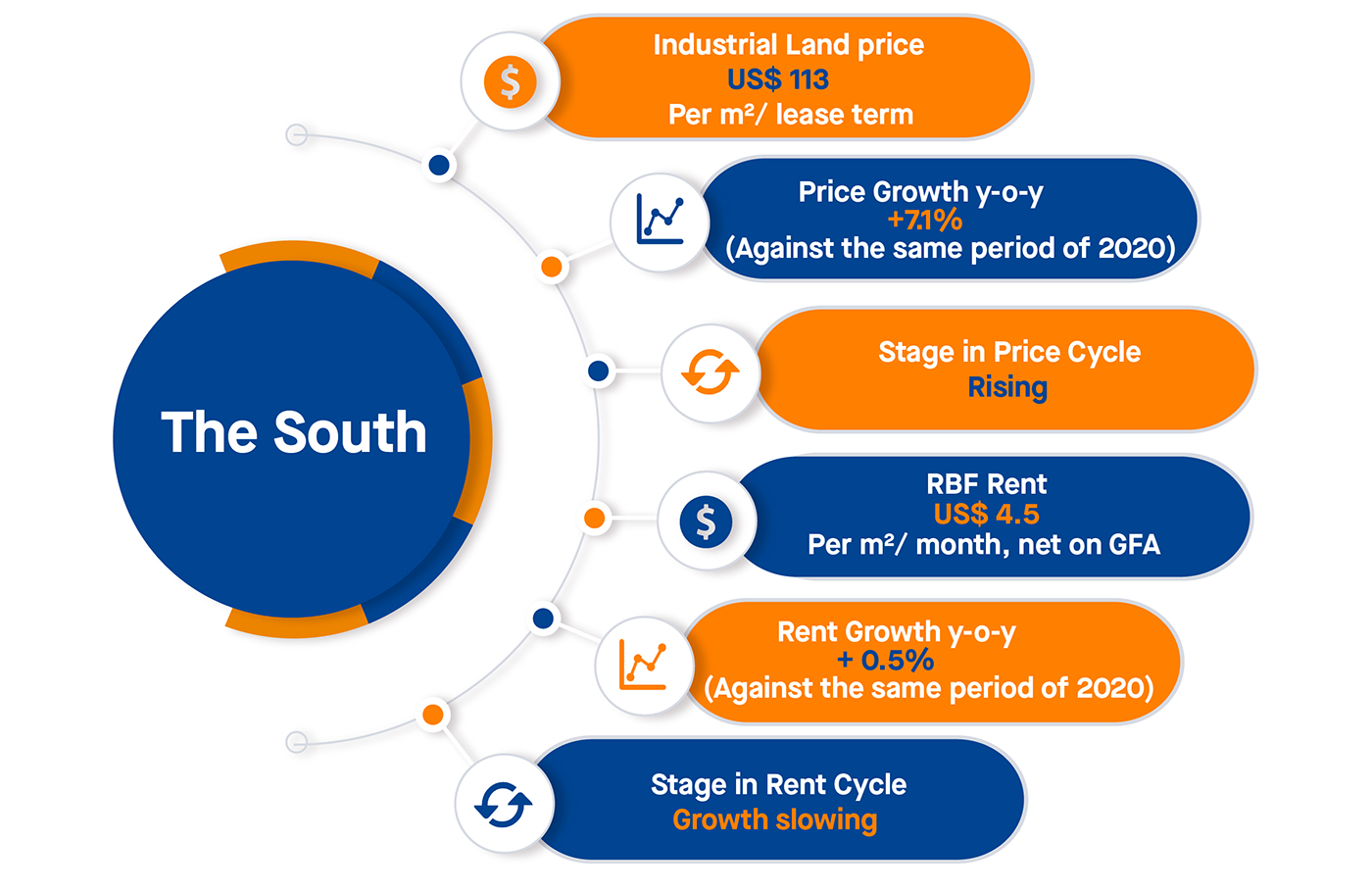 With promising signs from Vietnam manufacturing and epidemic control, IL was forecast to continue obtaining sharp growth; RBF would be busy again with approximately 940,000 m2 to be marketed at the end of 2021. With the optimistic prospects for Vietnam’s future manufacturing, the infrastructure system was ceaselessly improved and reconstructed by the local authorities, typically Phan Thiet- Dau Giay Expressway, Bien Hoa – Vung Tau Expressway, Ben Luc – Long Thanh Expressway Projects located in the key industrial markets surrounding HCMC.
