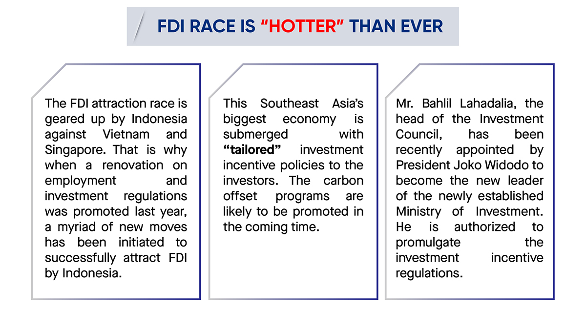 “Although similar incentives are applied by Vietnam and Singapore, we shall successfully acquire the projects thanks to our abundant natural resources, large market, high economic performance, and smart leadership”, shared to Bloomberg by Mr. Nurul Ichwan, Indonesian Investment Coordination Board.