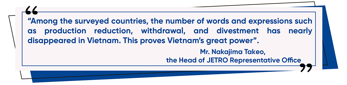 Meanwhile, Mr. Nakajima Takeo, Head of JETRO Representative Office in Hanoi, unveiled that production and business expansion are very hard as referred to by the JETRO survey on investment and business trend in 1-2 next year. Nevertheless, Vietnam is still named of the TOP countries of ASEAN.