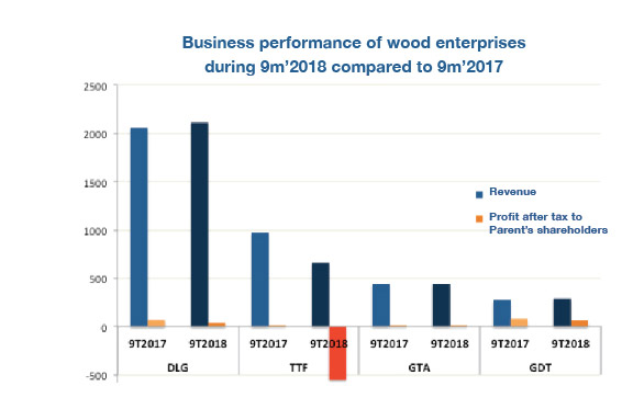 Other listed wood company, during the first 9 months this year, Phu Tai (PTB) have accumulated revenues of VND 3,161.4B, up by 9%, and profit of VND 255B, up by 16% over the same period. In which, wood accounts for 38% of revenues and 32% of gross profits, majority of which comes from export to US and EU markets.