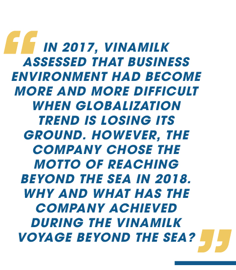 The voyage beyond the sea started in 1997. I identified that Vinamilk first had to focus on the domestic market. As competitors thousands of miles far away could reach the domestic market, why we did not keep our foothold and then start to export or participate the foreign market under favorable conditions. Since 1997, Vinamilk has directly exported in the Oil-for-Food Program. Before that, we had started to export to Russia but ended up not collecting money even after going to Russia in person and banking transactions between Russia and Vietnam has been extremely difficult until now. Thus, it was considered as the initial probe and played as a springboard for participation in the Oil-for-Food Program.