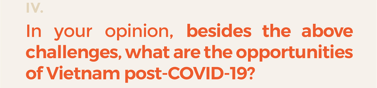 Mr. Vo Minh Nhut: Firstly, I think enterprises need a clear picture of the COVID-19 impact analysis to their industry which comes from Board of Innovation, one of the leading international consulting companies. In particular, enterprises will rely on the economic situations (V, U or L-shaped) and their business lines, from which form the basis for business contingency planning clearly for each situation. These plans include all financial indicators, supply chains and personnel…