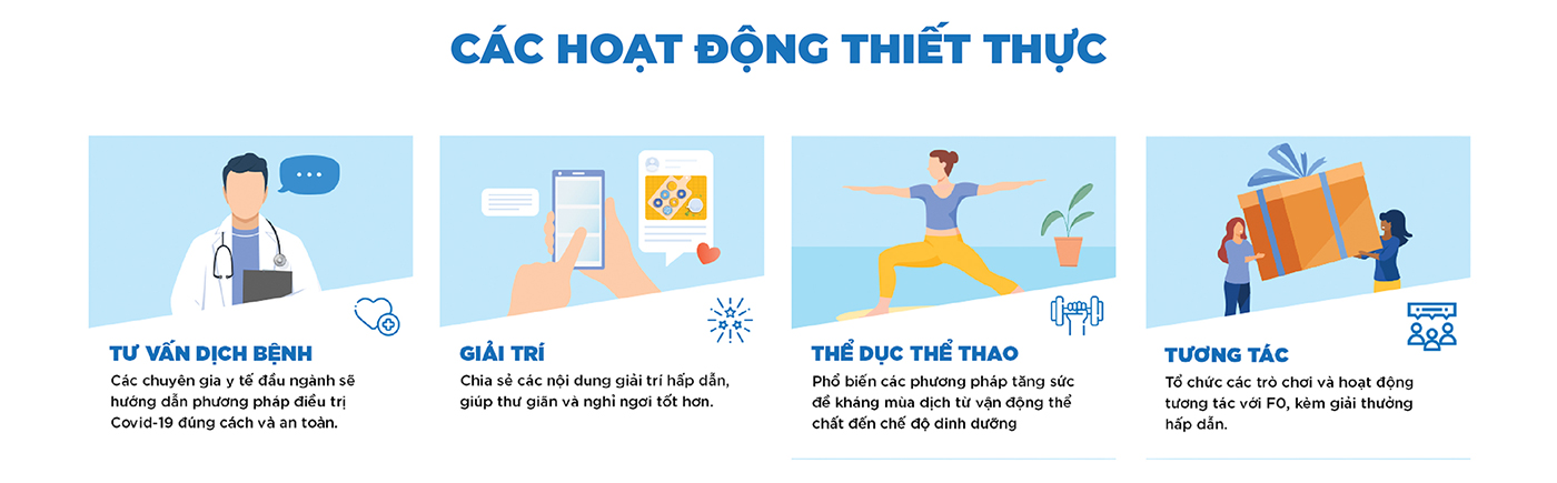 Bằng việc thường xuyên tổ chức miễn phí hàng loạt các hoạt động thiết thực, cộng đồng này sẽ là nền tảng trực tuyến bổ ích để bệnh nhân SARS-CoV-2 hồi phục nhanh chóng, cũng như tạo điều kiện cho những mạnh thường quân muốn giúp đỡ cộng đồng giữa đại dịch. “F0 không cô đơn” thấu hiểu được tâm lý hoang mang, lo lắng từ bệnh nhân và cả những người thân của họ, đội ngũ quản lý và điều hành hoạt động của nhóm sẽ tận dụng mọi nguồn lực từ các nhà hảo tâm và tổ chức y tế để mang đến một “hậu phương” vững chắc cho mọi F0.