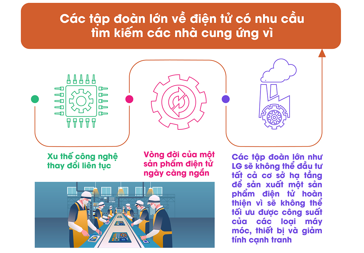 Sau khi đã có hệ thống tiêu chuẩn là lúc tập trung vào nâng cao chất lượng sản phẩm thông qua triển khai những hệ thống quản lý thông minh, và không ngừng đầu tư công nghệ. Hai yếu tố tiếp theo gần như đứng đầu trong các mối quan tâm của những thượng đế – người mua hàng, đó là giá thành cạnh tranh và uy tín của nhà cung ứng, thể hiện qua việc đảm bảo giao hàng đúng hạn. Và cuối cùng, khi đã xây dựng được sự tin tưởng với khách hàng bởi sản phẩm tốt, giá thành cạnh tranh, đội ngũ công ty lành nghề là lúc đội ngũ chăm sóc khách hàng vào cuộc. Duy trì quan hệ chặt chẽ, kết nối và đảm bảo dịch vụ tốt sẽ là miếng ghép cuối cùng đưa những nhà cung ứng Việt Nam đặt chân vào danh sách nhà cung ứng của các tập đoàn điện tử lớn.