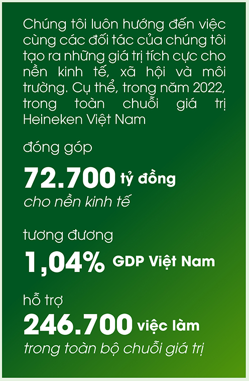 Thực ra các sáng kiến phát triển bền vững thường không chỉ mang lại những lợi ích tích cực cho môi trường, mà các bên liên quan chung tay trong các hoạt động này như nhà cung cấp và cả doanh nghiệp cũng được hưởng lợi. Điển hình như thông qua việc áp dụng mô hình kinh tế tuần hoàn, 6/6 nhà máy của Heineken Việt Nam đều đã đạt mục tiêu không còn rác thải chôn lấp, tái sử dụng và tái chế 100% các phụ, phế phẩm trong sản xuất, nước và năng lượng được sử dụng hiệu quả hơn, và ít phát thải ra môi trường hơn. Việc sử dụng vỏ trấu, mùn cưa, những phụ phẩm trong nông nghiệp và công nghiệp làm nguồn nguyên liệu biomass không chỉ giúp giảm phát thải mà còn tăng thêm thu nhập cho người nông dân và các bên liên quan.