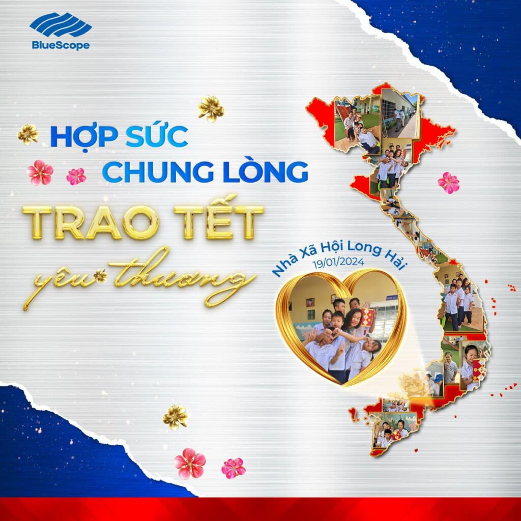 Ngày 19/01/2024 vừa qua, NS BlueScope Việt Nam đã có mặt tại Nhà Xã Hội Long Hải, Bà Rịa – Vũng Tàu hợp sức chung lòng để trao Tết Yêu Thương cho hơn 100 em nhỏ có hoàn cảnh khó khăn và khuyết tật tại đây thông qua: