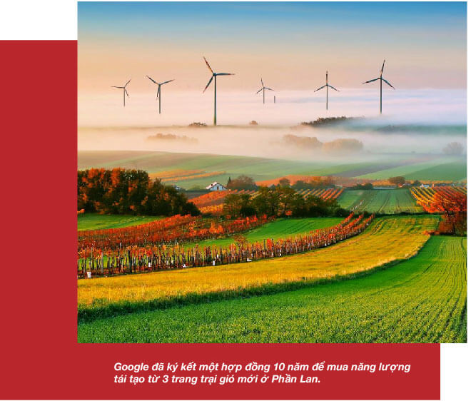 Google cũng tiếp nối đàn anh để mua năng lượng tái tạo lớn nhất thế giới với hợp đồng mua 3 gigawatt sản lượng từ các trang trại năng lượng mặt trời và gió trên toàn thế giới. Facebook cũng công bố muốn giảm phát thải 75% khí nhà kính bằng việc sẽ sử dụng 100% năng lượng tái tạo vào cuối năm 2020. Kể từ năm 2008, các công ty Mỹ ợng năng lượng mà 2 triệu hộ dân Mỹ dùng trong 1 năm. Bloomerg New Energy Finance (BNEF) dự báo, tốc độ tăng trưởng của con số này sẽ gia tăng nhanh hơn nữa trong thập kỷ tới, khi ít nhất 50 công ty Mỹ ký hợp đồng mua năng lượng sạch dài hạn.