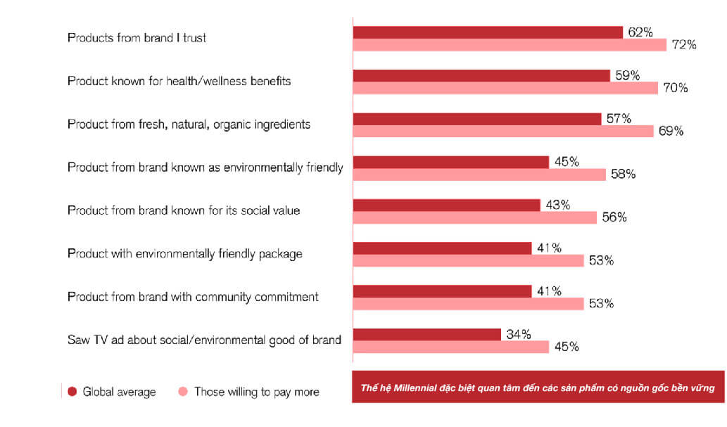 Các nghiên cứu gần đây từ Nielsen và Deloitte cho thấy rằng, thế hệ Millennials sẵn sàng trả nhiều tiền hơn cho các sản phẩm và dịch vụ được coi là bền vững hoặc được tạo ra bởi các công ty có trách nhiệm với xã hội và môi trường. Trong lĩnh vực hàng xa xỉ, theo báo cáo 2018 Predictions for The Luxury Industry của Positive Luxury, thế hệ Millennial đặc biệt xem trọng tính bền vững hơn bao giờ hết, đồng thời đặc biệt quan tâm đến yếu tố đa dạng, bình đẳng và tôn vinh các giá trị truyền thống. Họ đang tích cực chứng minh rằng mình có ý chí, kiến thức và năng lực, để thúc đẩy thay đổi tích cực lâu dài cho môi trường hơn tất cả các thế hệ khác trước.
