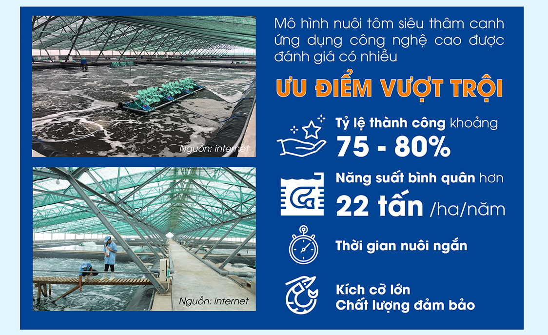 Trước thực tế này nhiều doanh nghiệp chế biến tôm xuất khẩu lớn đã phát triển vùng nuôi. Điển hình như mô hình nuôi tôm siêu thâm canh ứng dụng công nghệ cao trong nhà kính.