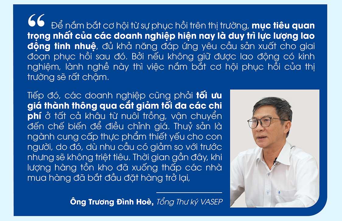 Một điểm đáng lưu ý là việc người tiêu dùng ưu tiên lựa chọn sản phẩm sơ chế, có giá rẻ gần đây chỉ là cục diện ngắn hạn khi bị ảnh hưởng thu nhập từ kinh tế suy giảm, lạm phát và hoạt động của các chuỗi nhà hàng chưa được khôi phục. Các doanh nghiệp vẫn xác định sản phẩm giá trị gia tăng là lợi thế đã làm nên thương hiệu cho thuỷ sản Việt Nam, không vì khó khăn trước mắt mà thay đổi chiến lược phát triển.